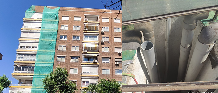 Ver másRestauración de cantos de forjado de terrazas, cornisas y bandejas de terrazas. Picado de morteros en mal estado, Apliicación de pintura Pétrea en zonas reparasdas anteriormente. Saneado del Patinillo con revestimiento de mortero, saneado de bolsas, grietas, desconchones, etc.. Desmontaje de bajantes comunitarias y posterior colocación de tuberías de PVC. Medios axiliales descuelgue vertical.